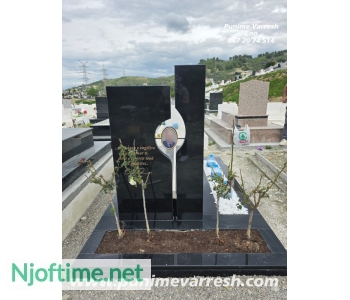Varr me Portret te gdhendur ne kembe ne granit te zi , me permasa te ndryshme.