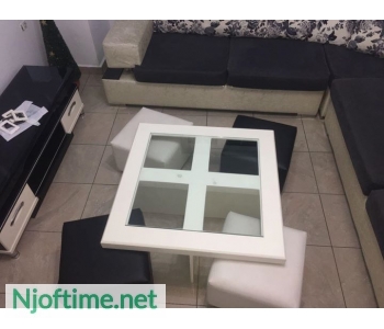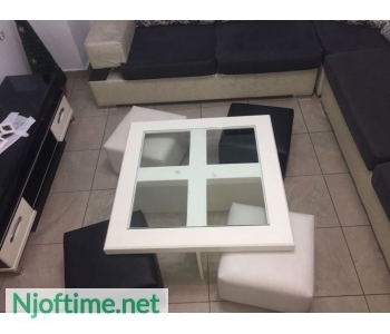 Shitet Tavolinë mesi me xham. Tavolina ka dhe 4 pupa lëkure. Eshtë e mbajtur shumë mirë.